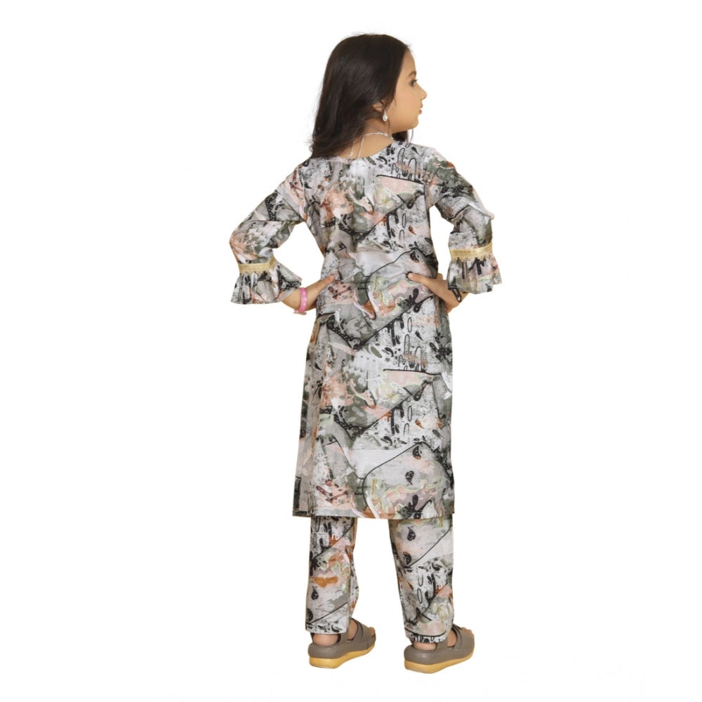 Girl's Maslin Embrodrery Lace Aliya Cut Top With Bottom Dupatta Set