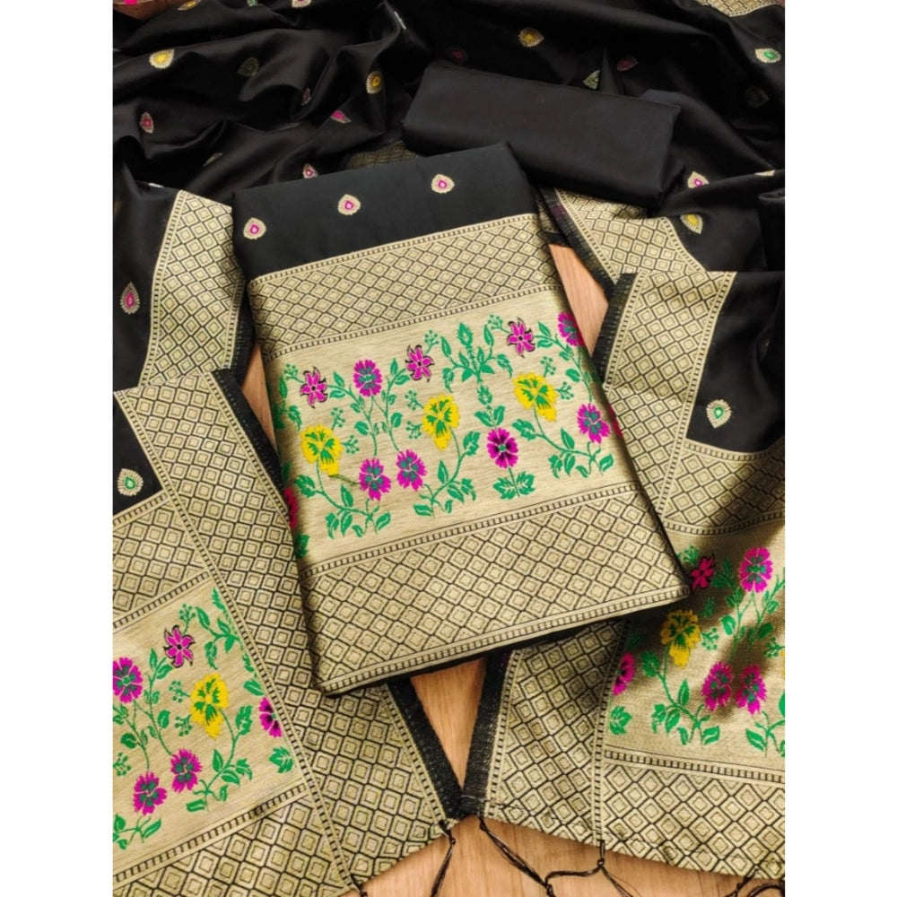 Generic Women's Banarasi Silk Printed Unstitched Salwar Suit Material With Dupatta (Black, 3Mtrs)
