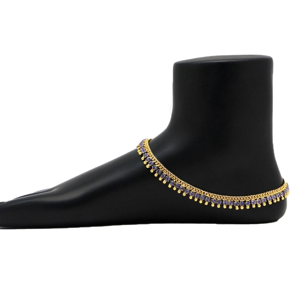 Women's Blue Color Rhinestone Anklets