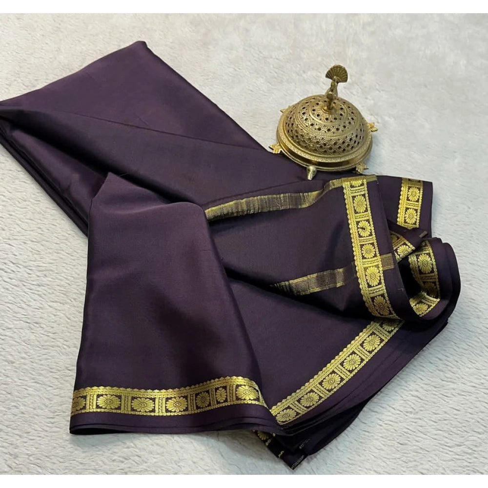Generic Women's Crepe Chit Pallu Solid Saree With Unstitched Blouse 5.5Mtr (Grey)