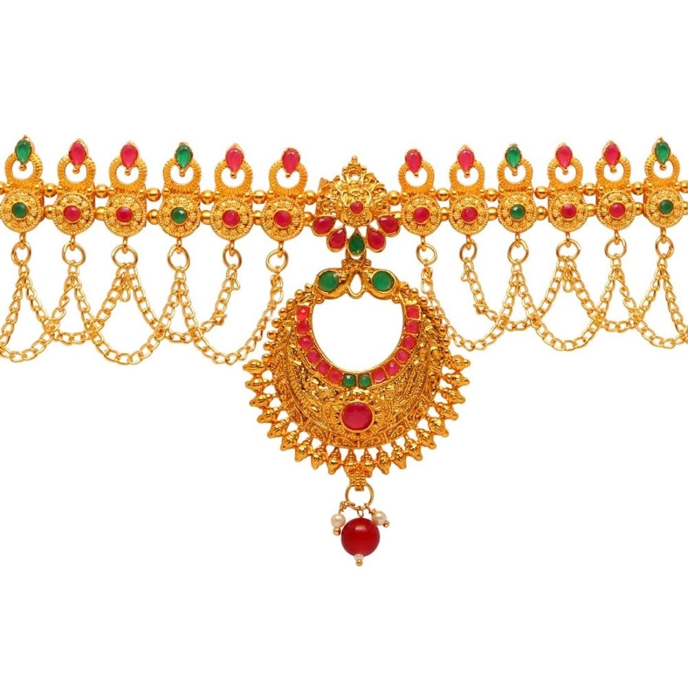 Generic Women's Maroon & Green Color Glass Stone Kamarband Adjustable Chain